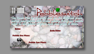 Name: Pebbleswitch The Deed: Pick up a pebble and go. At different place, switch your pebble with a new pebble. Bring new pebble back to old pebble original spot and place it there. Introduced: Ts35 Printings: Dd007 (1/11/03) Black Envelope Random: 35-A Notes: Essentially, make two far-apart pebbles switch places. RETURN TO OBLIVIANA HOMEPAGE © 2003 |